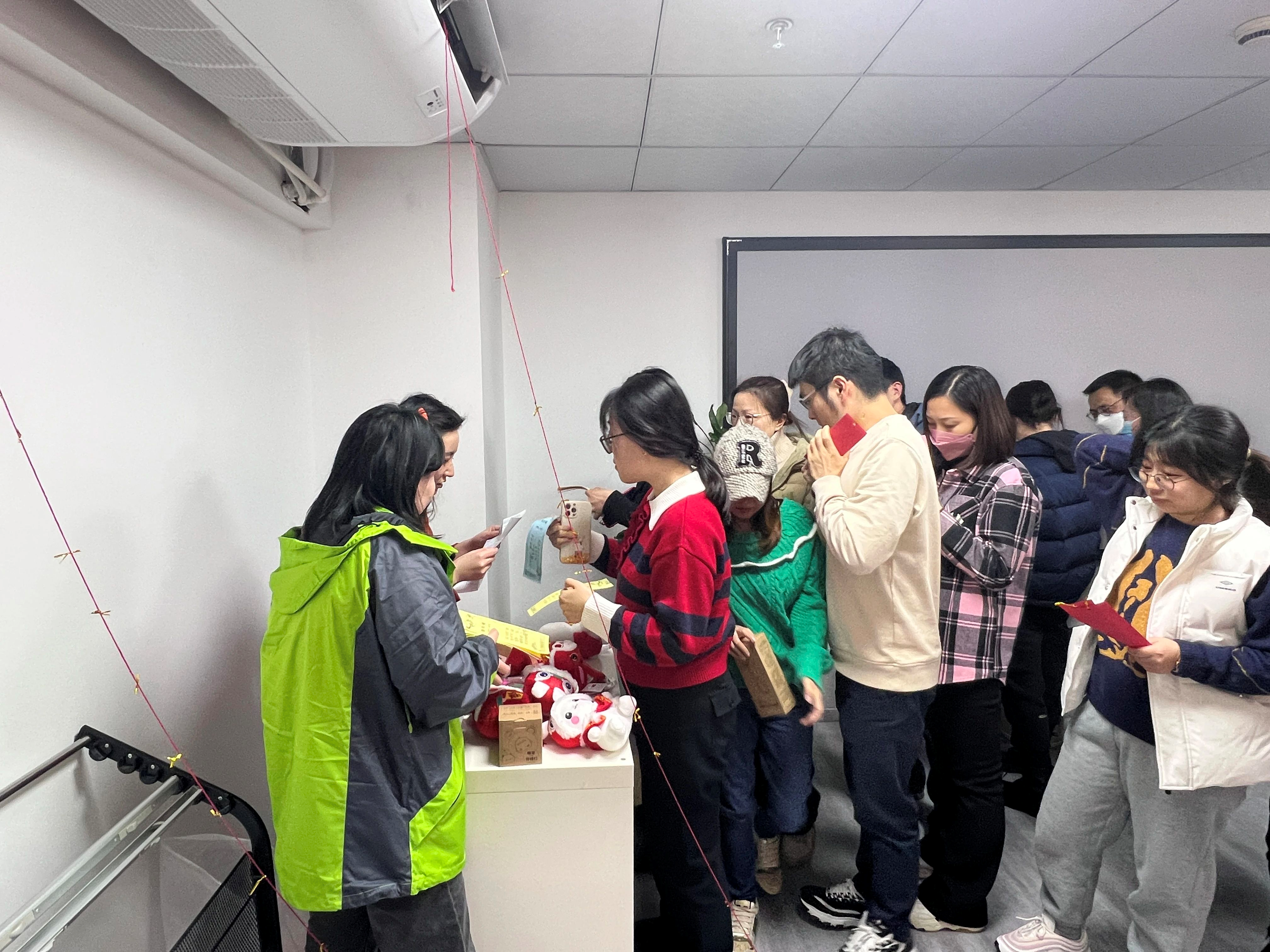 下午一點半,“鬧元宵·猜燈謎”活動正式開始。在活動現場,看到懸掛的彩色燈謎,大家充滿了好奇,躍躍欲試。謎面有趣而通俗,內容豐富,涵蓋了傳統文化、日常生活、自然與動物等方面,員工們興致勃勃,有的凝神思考,有的議論探討,你一言,我一語,互相交流,好不熱鬧。