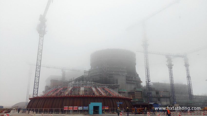 2017年4月12日,早上6時,隨著吊裝總指揮的一聲令下,重達166噸的穹頂由CC6800型履帶吊緩緩吊起,通過起鉤、回轉、落鉤、變幅等一系列施工,于7時02分成功吊裝就位,安全質量滿足要求。這一歷史性的一刻,與中核華興達豊紅沿河核電項目部全體人員的不懈努力不可分割。